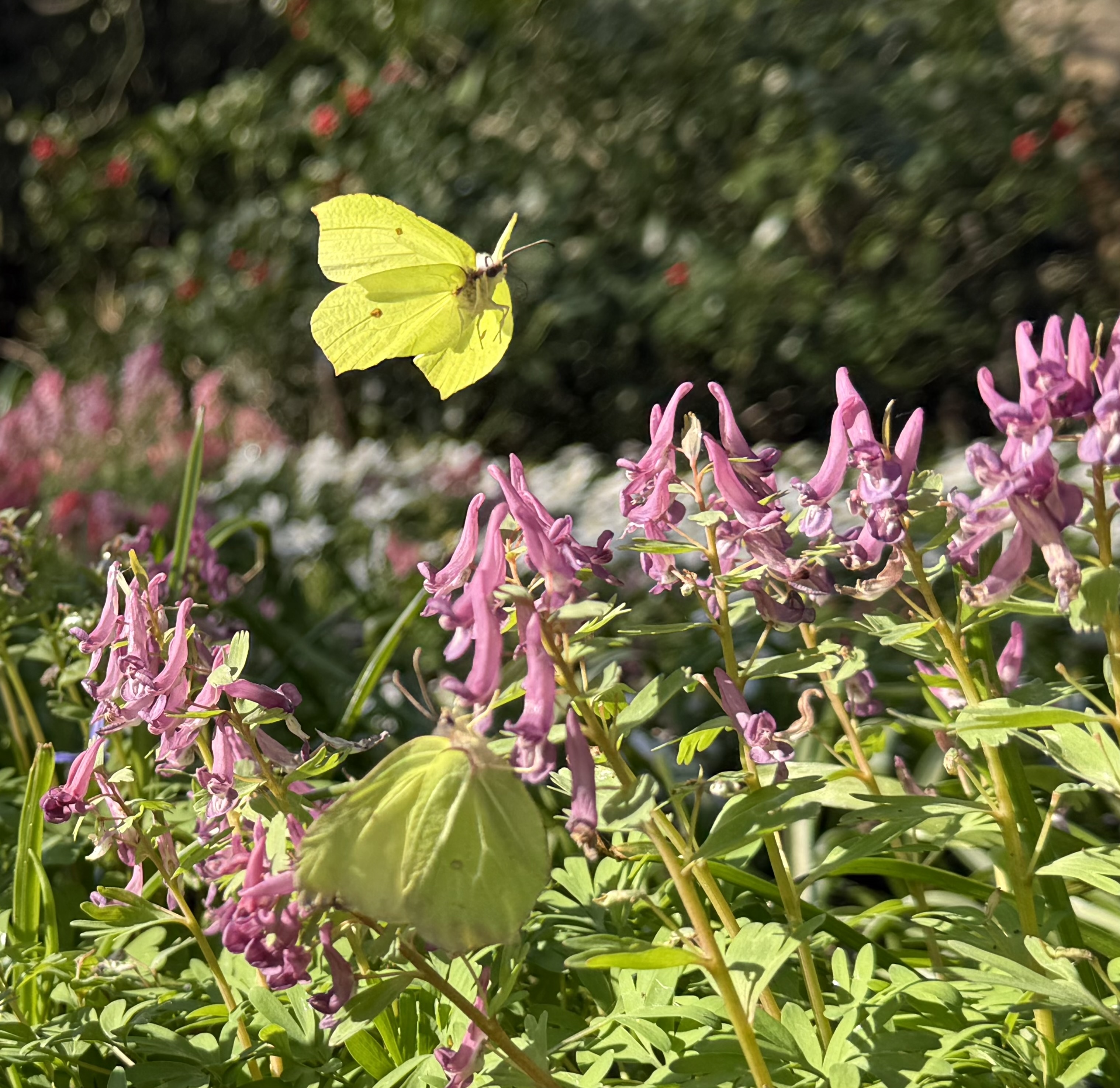 Have you seen any butterflies yet this year? Hot sunshine during the winter months will bring out Commas and Peacocks which overwinter as adults. But the herald of spring is the butter-coloured Brimstone, another that survives winter as an adult. (This is the male, the topmost butterfly in the image above. The female is a delicate lime green.)