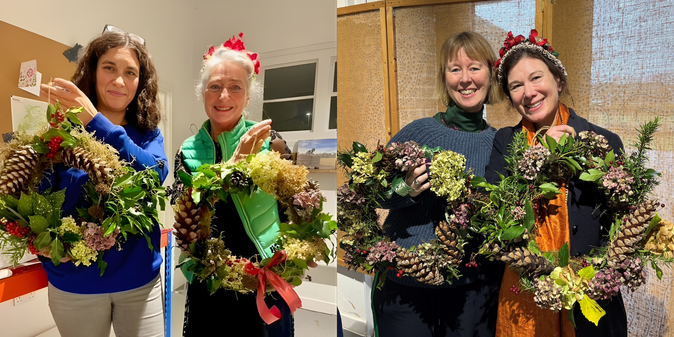 A lovely evening spent creating a beautiful eco friendly festive wreath and making new friends. We were guided through the process by a warm and friendly expert and the results which were charming, were proudly displayed on our front door!