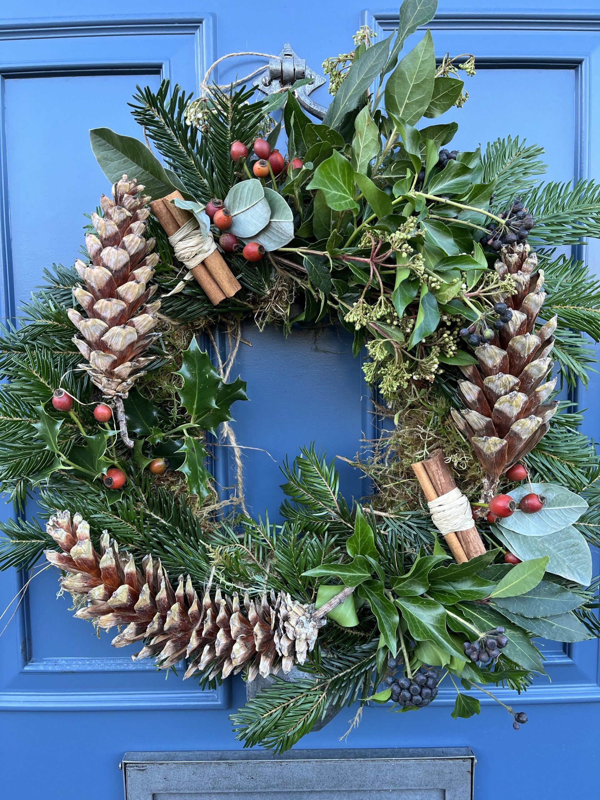 A lovely evening spent creating a beautiful eco friendly festive wreath and making new friends. We were guided through the process by a warm and friendly expert and the results which were charming, were proudly displayed on our front door!