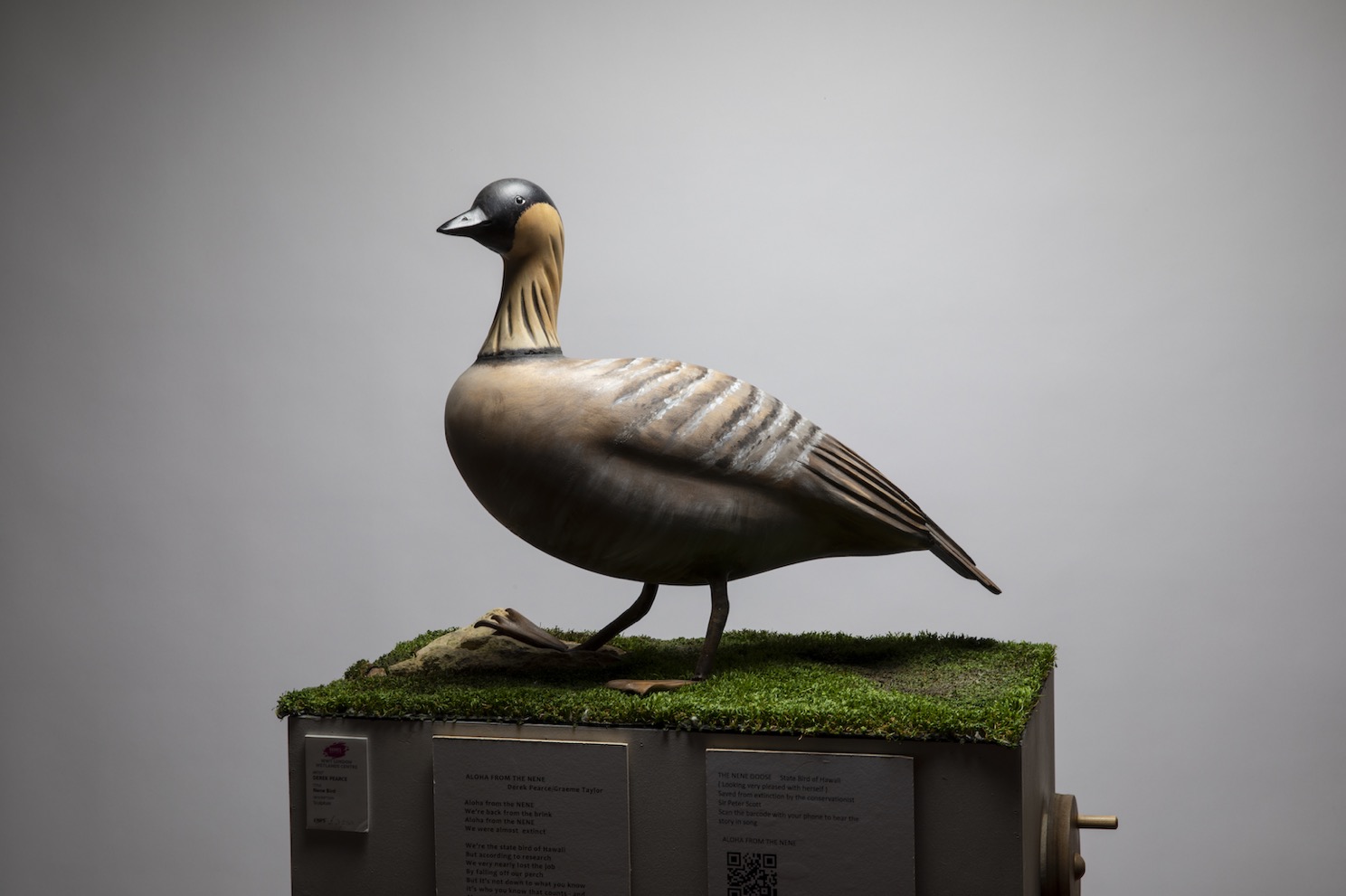 “We have lived in the house for 10 years and over that time I have become more and more concerned about the climate and this is reflected in my work. Some of the pieces are ironic and some thought provoking and some have a sense of humour (I hope). There is one optimistic piece about the Nene Goose, the State Bird of Hawaii, saved from extinction by Sir Peter Scott, the founder of WWT.”